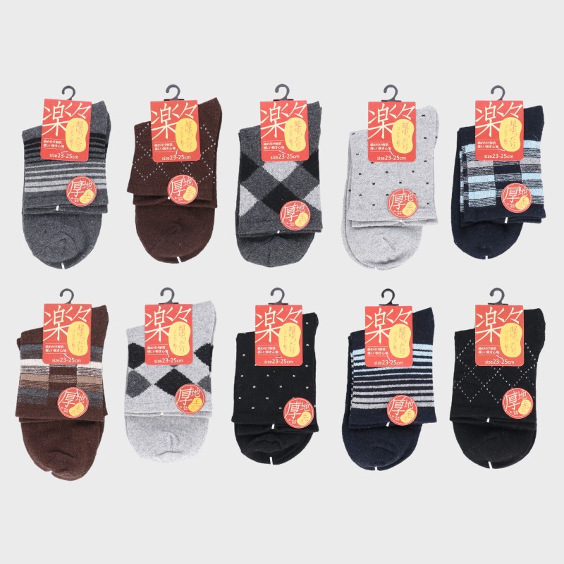 【バンドル】婦人『楽々超ゆったり』厚地毛混ゴムナシ柄クルー丈ソックス