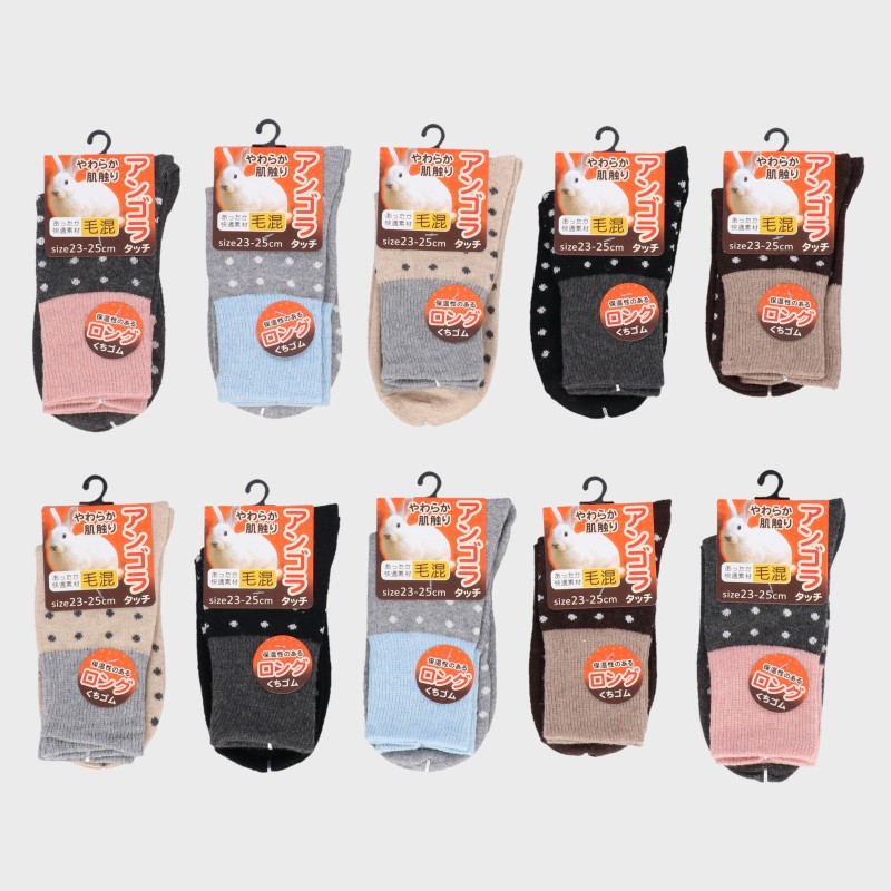 【バンドル】婦人『アンゴラタッチ』やわらか肌ざわりロング口ゴム柄クルー丈ソックス
