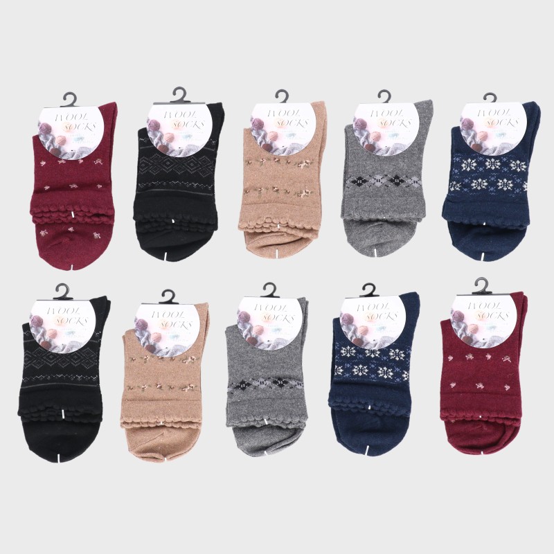 【バンドル】婦人『WOOLSOCKS』毛混口ゴムピコ柄クルー丈ソックス