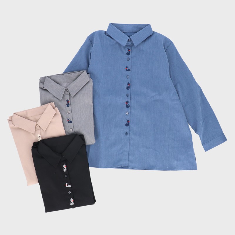 【バンドル】婦人前立てネコ刺しゅうブラウス