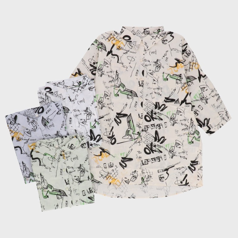 【バンドル】婦人7分袖総柄プリントチュニックシャツ