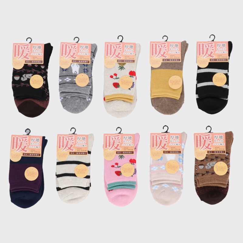 【バンドル】婦人『暖厚地暖かパイル』ゆったり口ゴムクルー丈ソックス