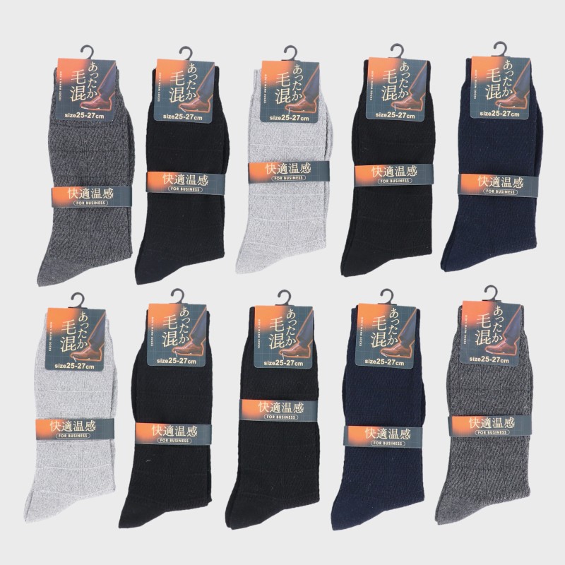 【バンドル】紳士『あったか毛混』鹿の子編み無地クルー丈ソックス