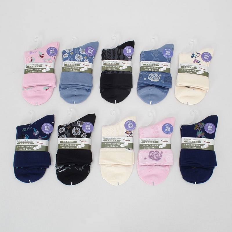 【バンドル】婦人綿混素材 しめつけずに足元快適ラッパ口ゴムクルー丈ソックス