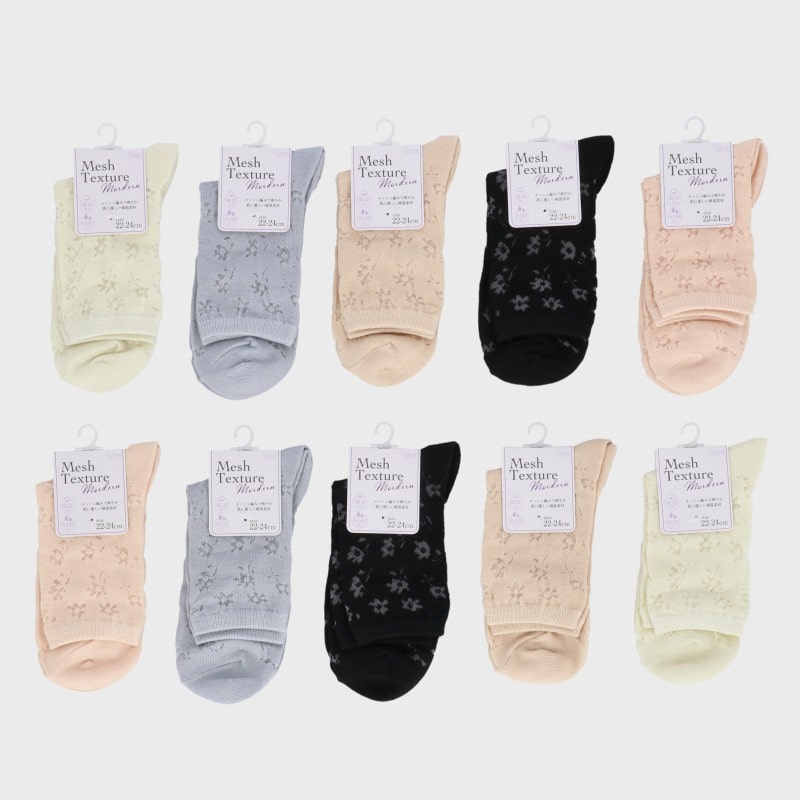 【バンドル】婦人『MeshTexure』綿混メッシュ小花柄クル‐丈ソックス