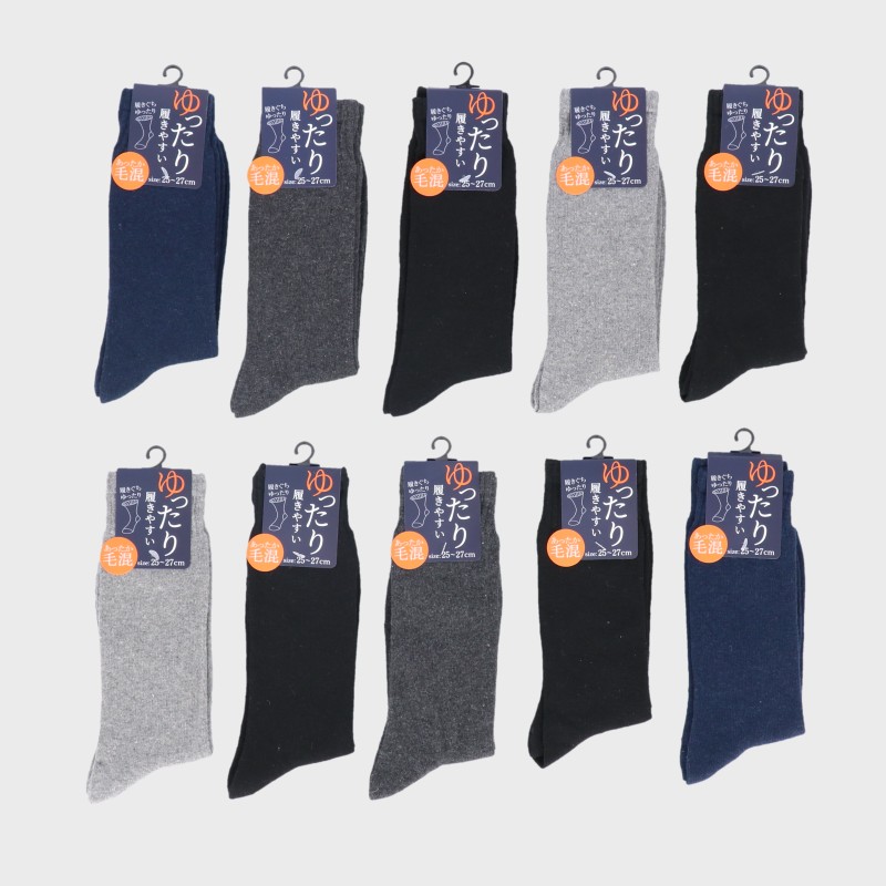【バンドル】紳士『ゆったり履きやすい』あったか毛混履きぐちゆったり無地クルー丈ソックス