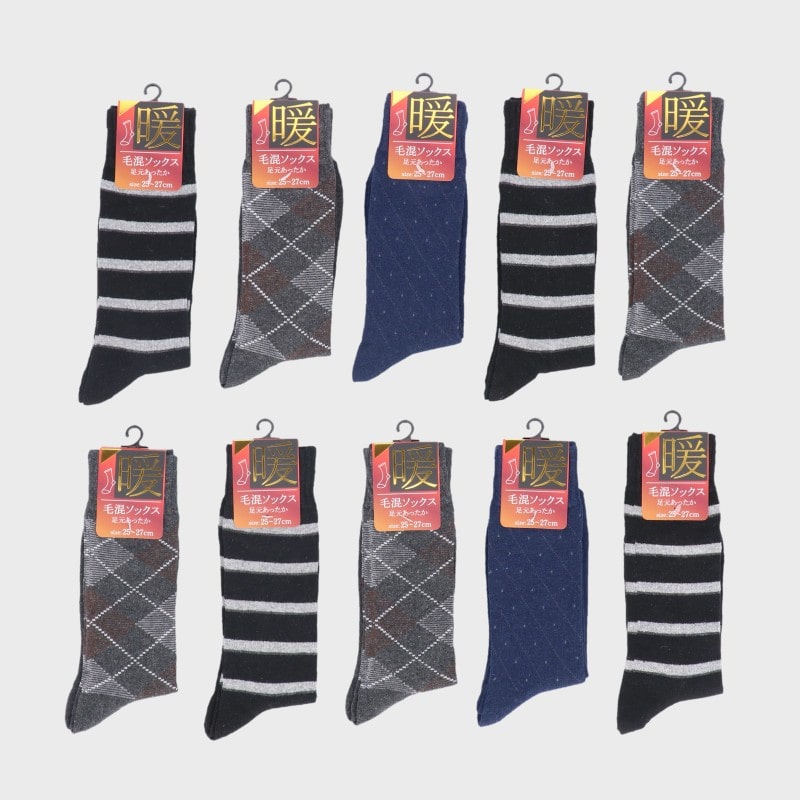 【バンドル】紳士『暖毛混』足元あったか柄クルー丈ソックス