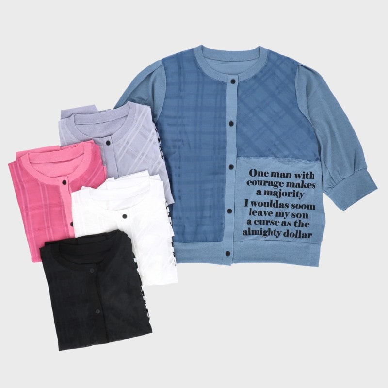 【バンドル】婦人7分袖シアー英字プリントカーディガン