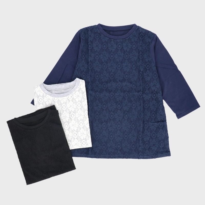 【バンドル】婦人7分袖レース貼り付けTシャツ