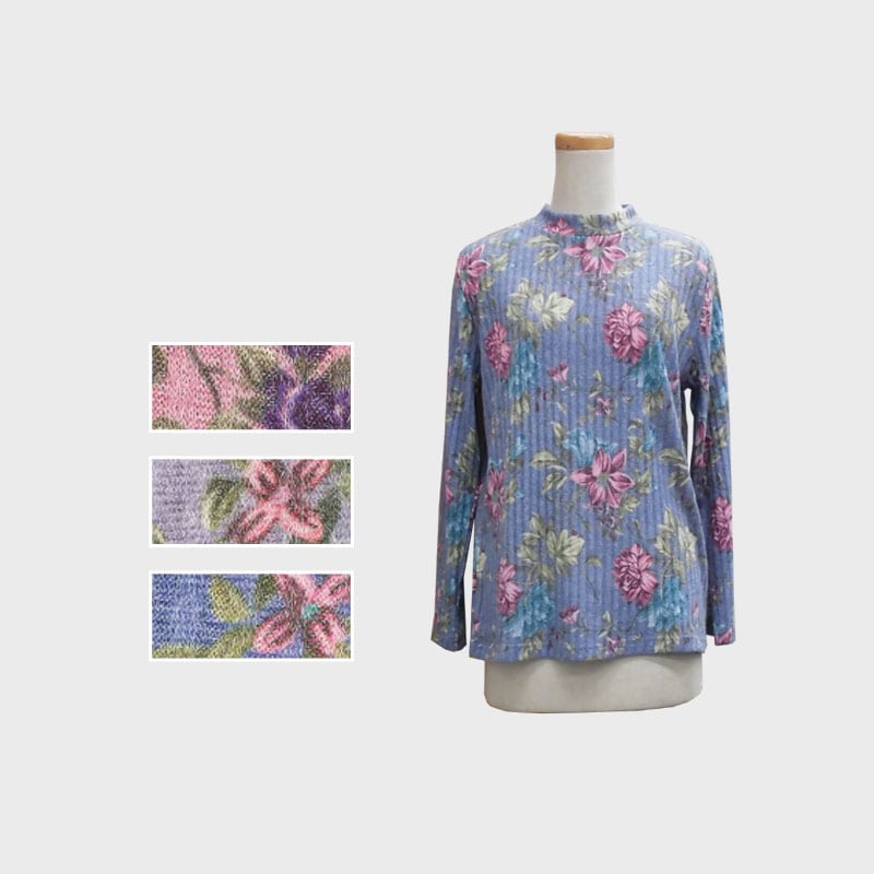 【バンドル】婦人リブ花柄プリントTシャツ