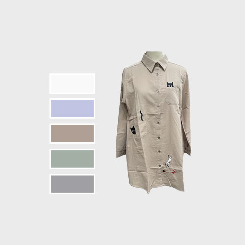 【バンドル】婦人ネコ刺しゅうロングシャツ