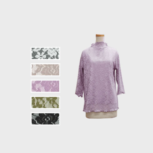 【バンドル】婦人7分袖レース裏付きボトルメロー衿Tシャツ