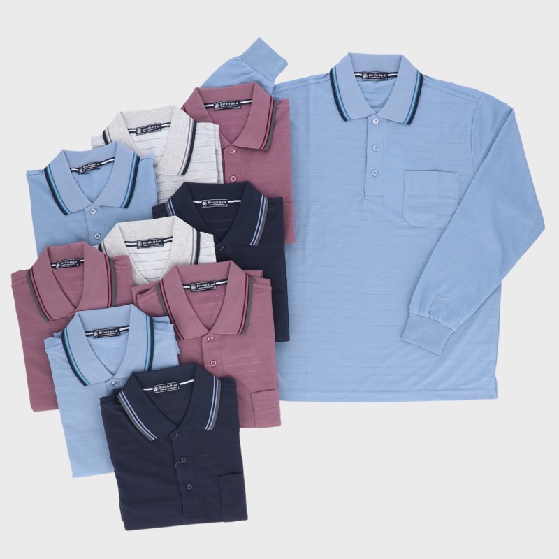 【バンドル】紳士長袖鹿の子タックボーダー柄ポロシャツ