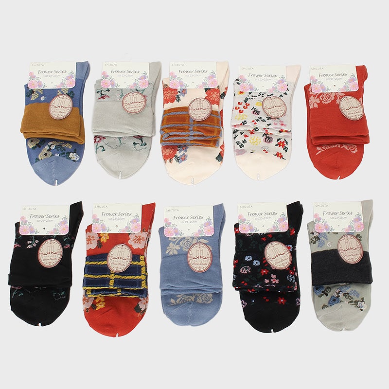 【バンドル】婦人『Frower 』綿混花柄クルー丈ソックス