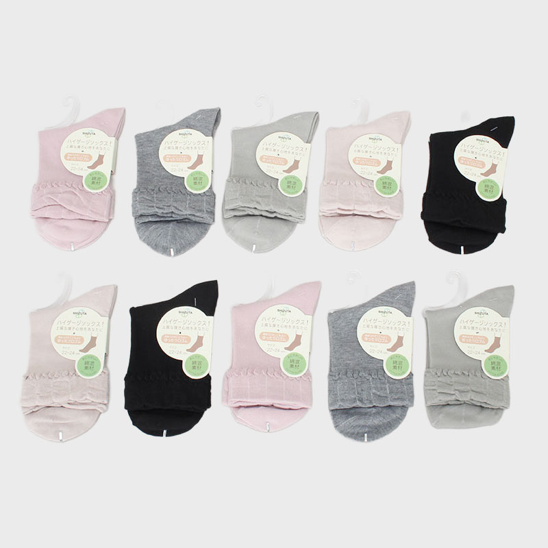 【バンドル】婦人綿混素材ハイゲージ無地クルー丈ソックス