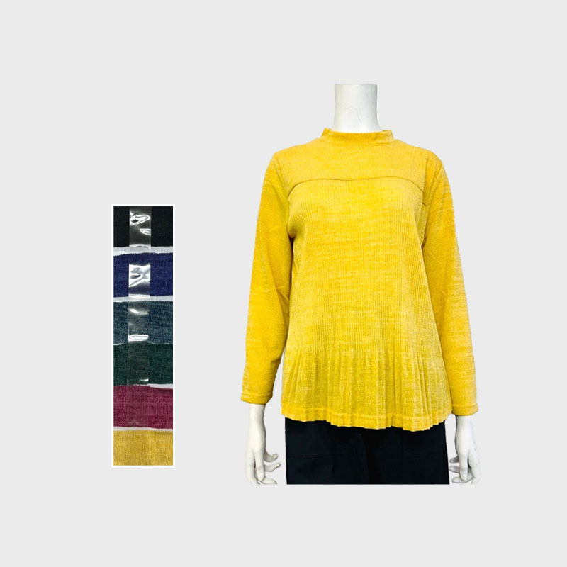 【バンドル】婦人無地切り替えプリーツTシャツ