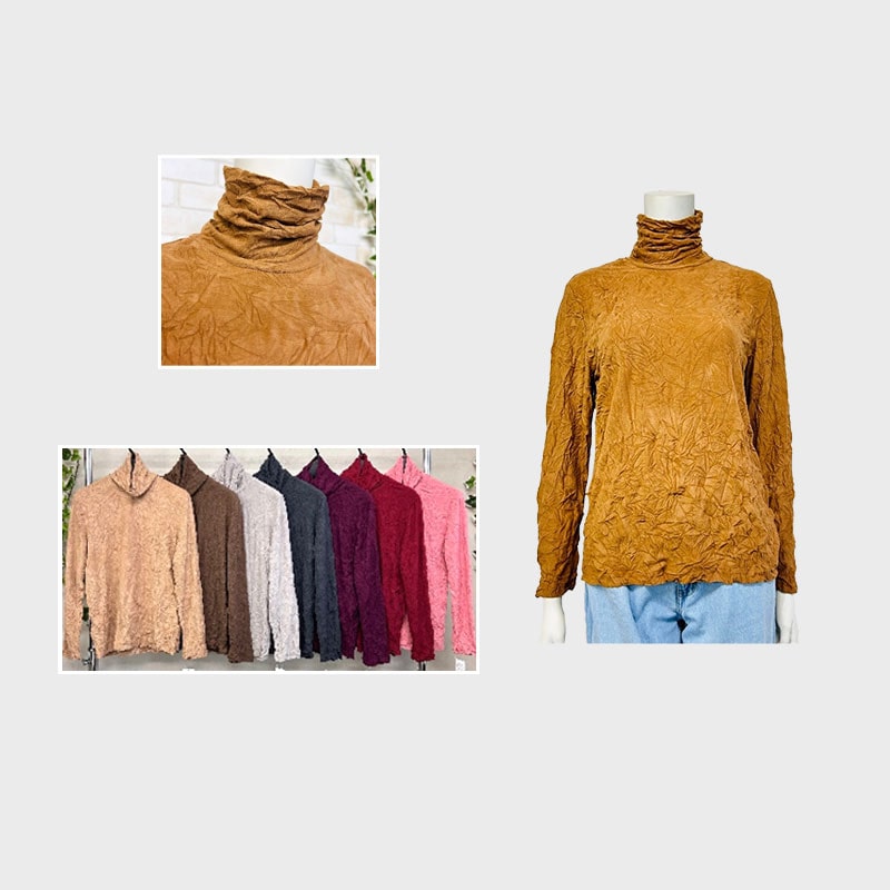 【バンドル】婦人しわ加工タートルネックTシャツ