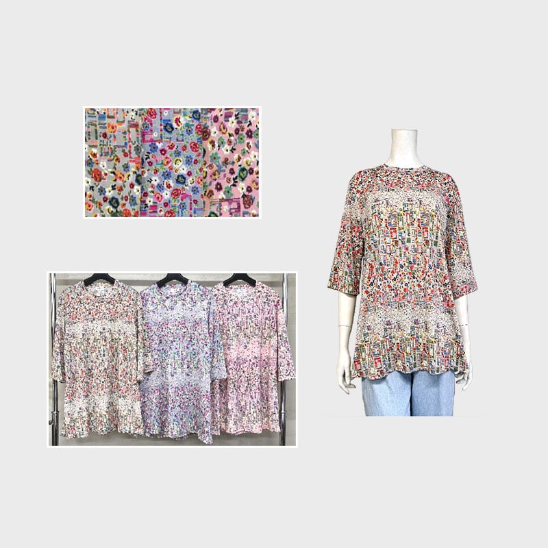 【バンドル】婦人7分袖総柄Aラインプリントチュニック