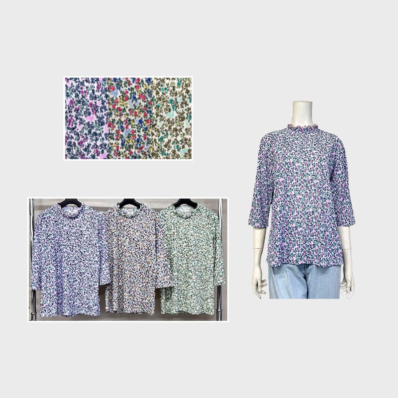 【バンドル】婦人7分袖総柄メロー衿プリントTシャツ