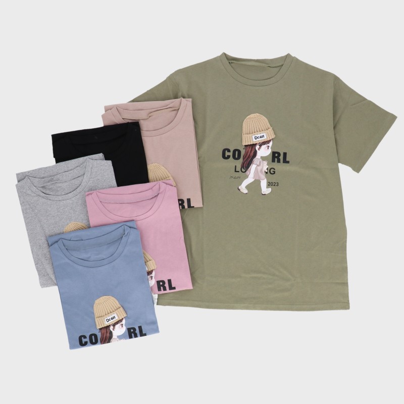 【バンドル】婦人5分袖女の子プリントTシャツ