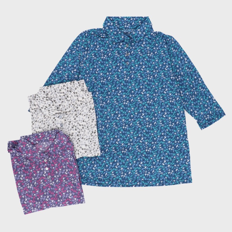 【バンドル】婦人7分袖総柄えり付きプリントチュニック