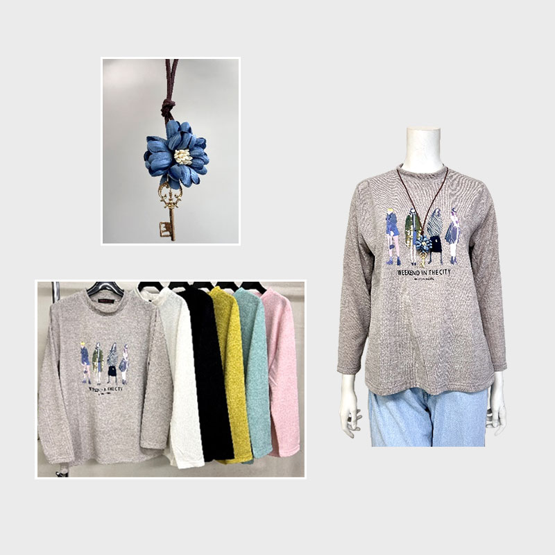 【バンドル】婦人大寸ネックレス付きミルプリントTシャツ