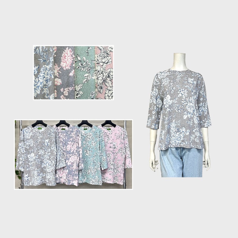 【バンドル】婦人7分袖総柄プリントTシャツ