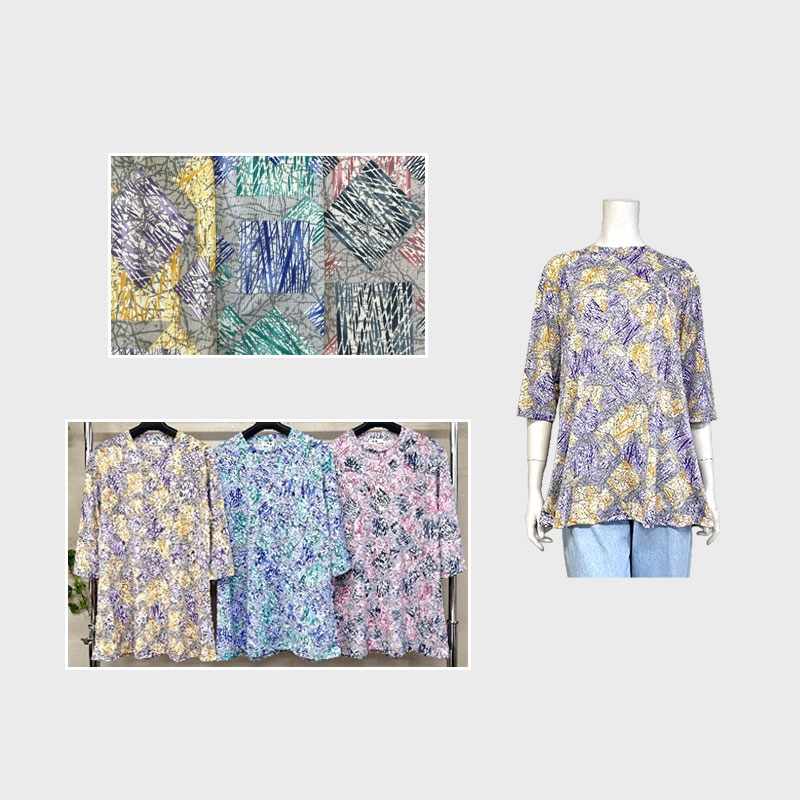 【バンドル】婦人大寸7分袖プリントAラインチュニック