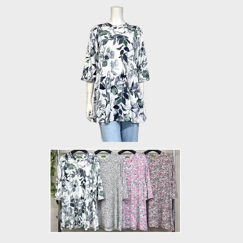 【バンドル】婦人3L7分袖プリントAラインチュニック