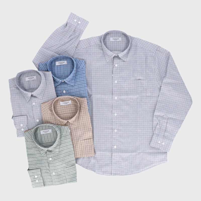 【バンドル】紳士夏長袖ナイアガラ格子柄シャツ
