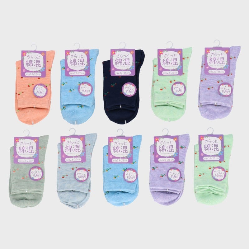 【バンドル】婦人さらっと綿混 サクランボ柄クル−丈ソックス