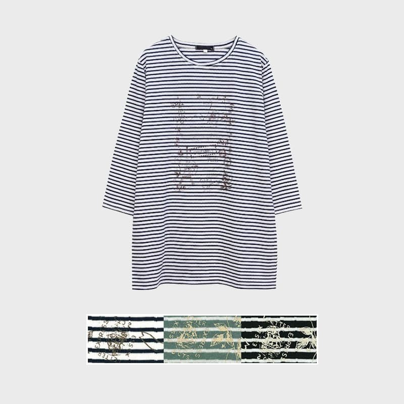【バンドル】婦人7分袖ボーダー前身プリントTシャツ